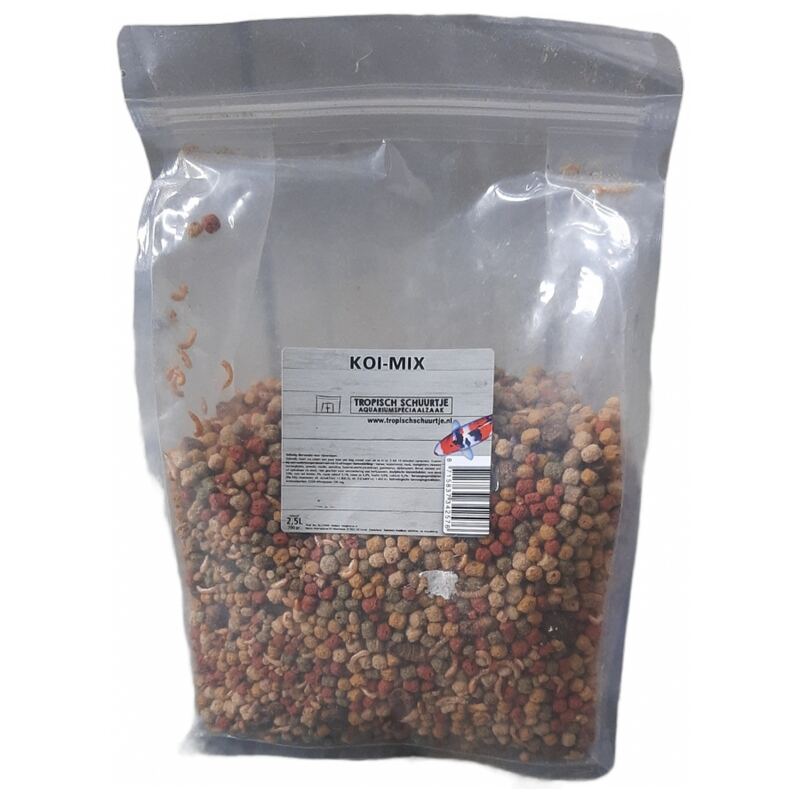 Compleet hoofdvoeder voor alle koiachtigen. Ook geschikt voor overige vijvervissen.Voeder bestaat naast verschillende korrels o.a. uit gedroogde zijderupsen (extra eiwitten) en gedroogde gammarus (vlokkreeftjes).Wij versturen uw webshop bestelling met PostNL en deze wordt doorgaans de volgende werkdag afgeleverd. Uiteraard kunnen wij geen levend materiaal verzenden zoals vissen, planten en levend voer. Dit kunt u wel bestellen wanneer u kiest voor afhalen in de winkel, of u komt natuurlijk gewoon even bij ons langs!